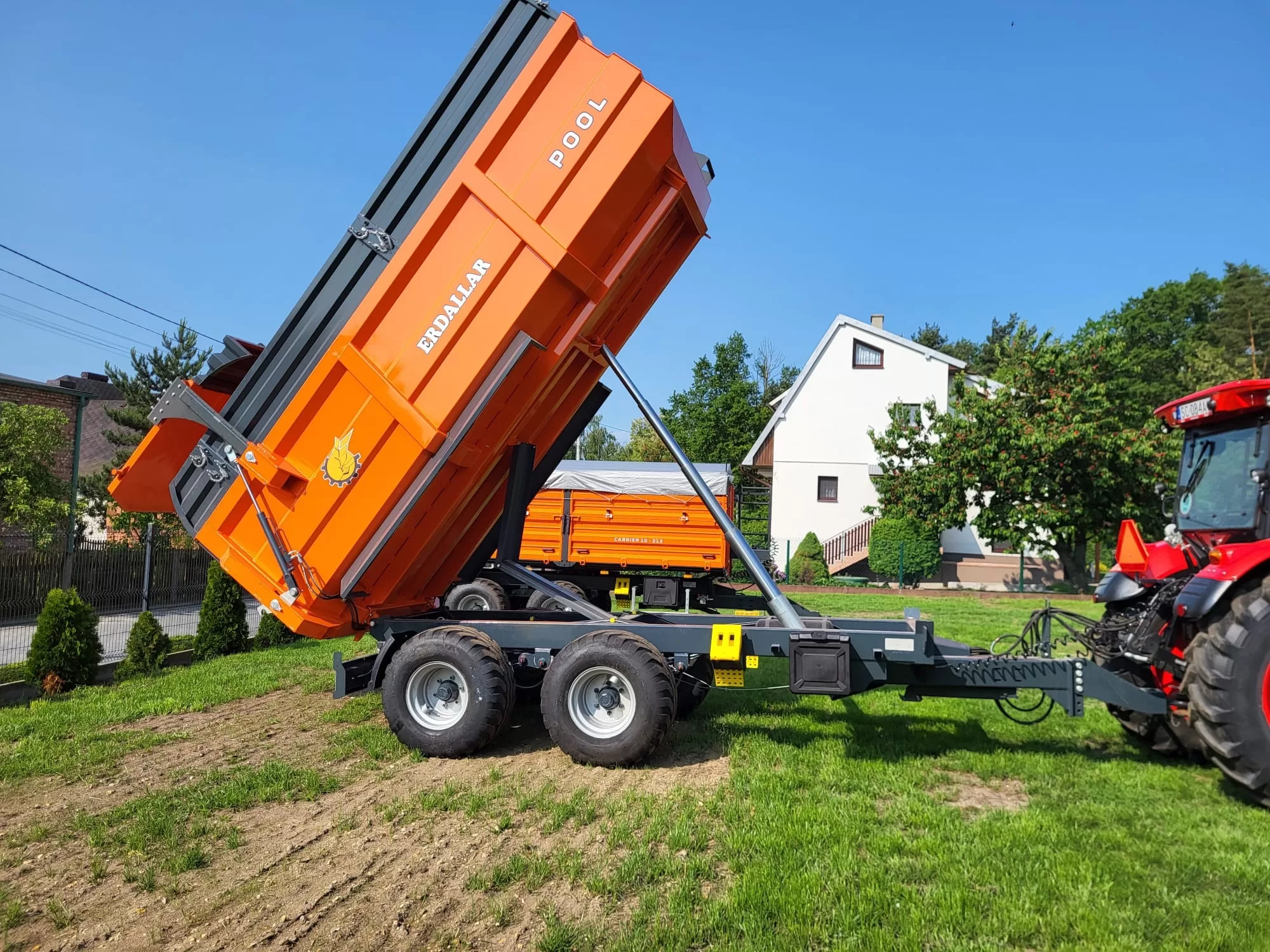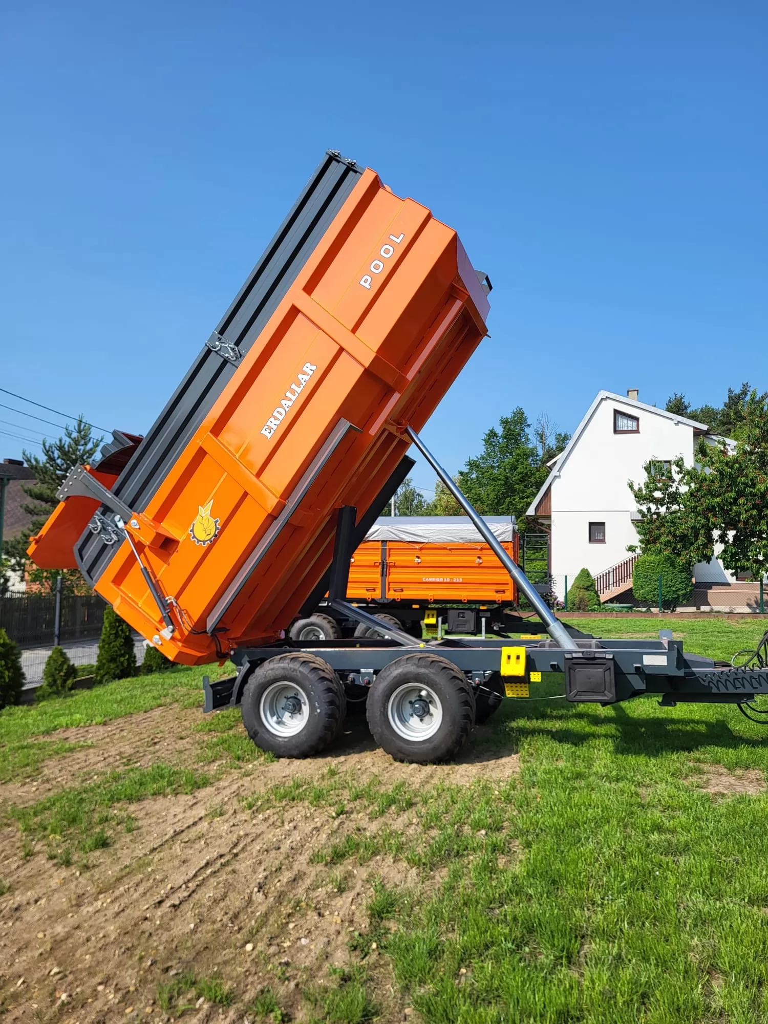 Návěs na traktor s nostností 12 tun, výraznou předností tohoto vleku je masivní konstrukce na listových perech která stojí na tandemovém podvozku s možností zvolit si jakýkoliv rozměr pneumatik.